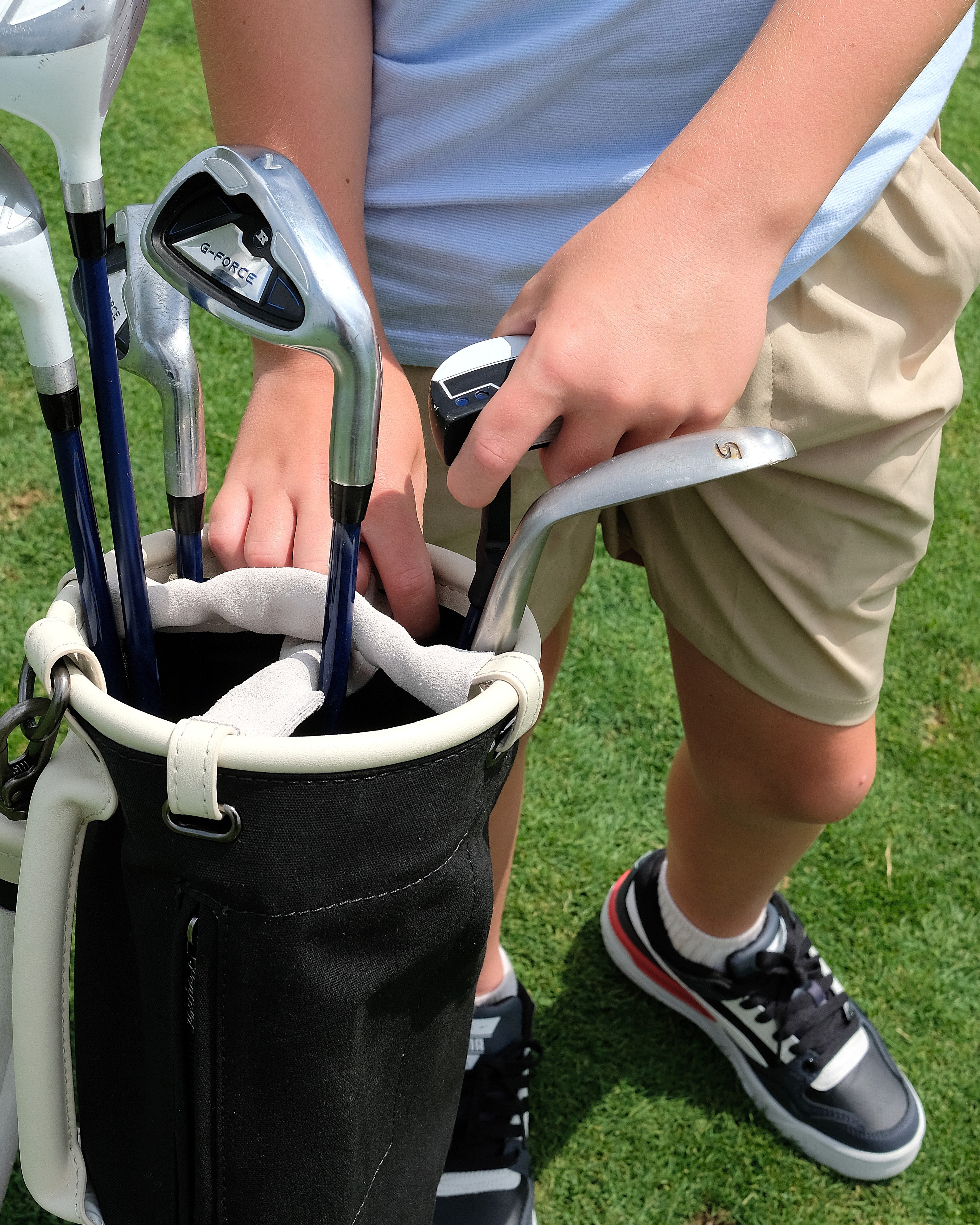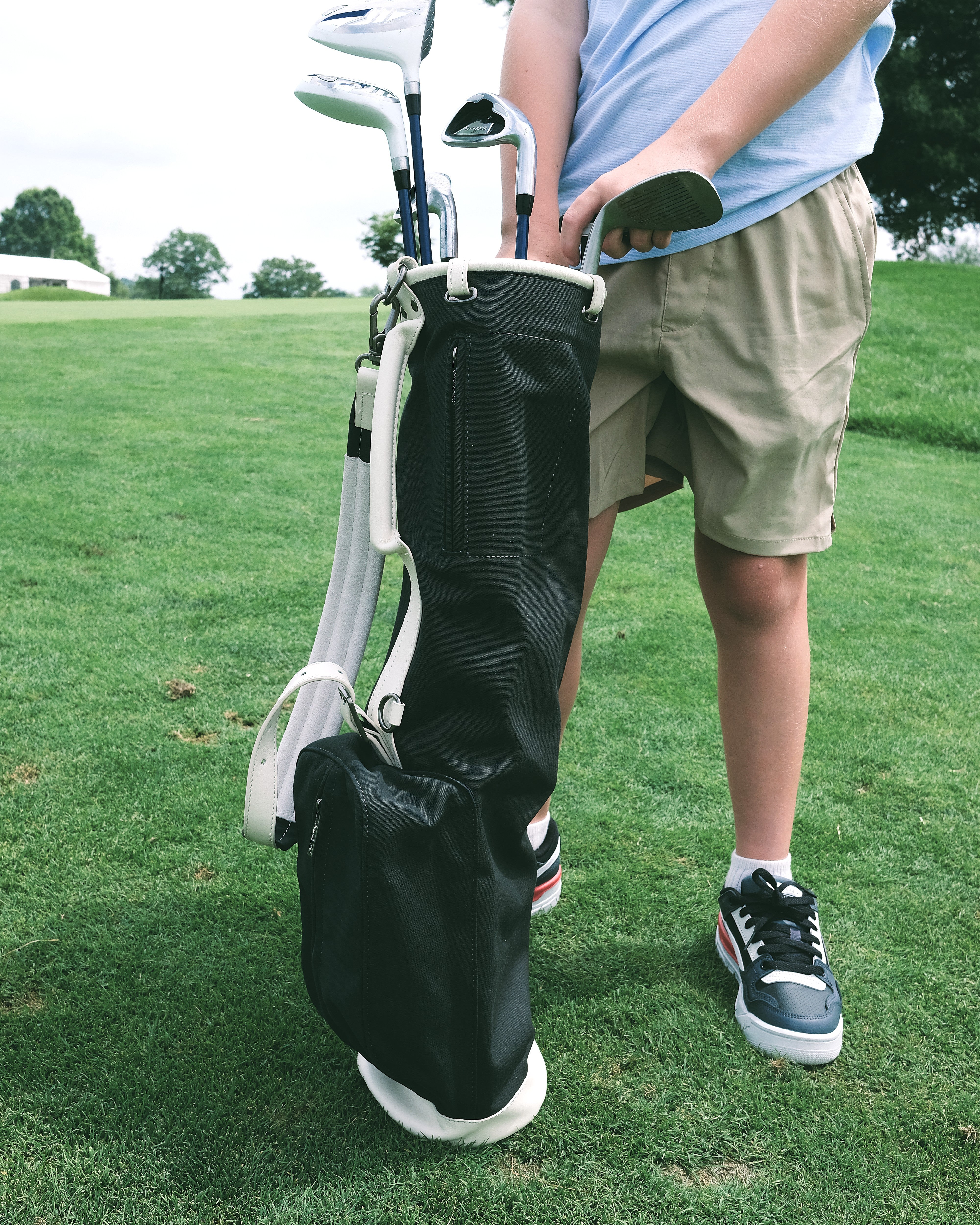 The Heritage Junior Sunday Bag, is crafted in the same way as all our other Sunday bags made from British Millerain waxed canvas and full-grain leather, paying homage to our legacy. Waxed canvas, chosen for its historical resilience in harsh environments, and leather, valued for its durability, are the hallmarks of this bag. At 28" tall with a 6" top ring, this bag is perfect for junior golfers aged 5-10. Following in the footsteps of their heroes, mum & dad.